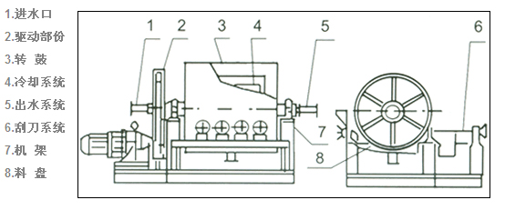 7、冷卻或(加熱)系統有分夾套式或噴淋式,按切片機的大小規格及物料的特性來設計,可提高換熱效率及增加轉鼓強度,并提高相對產品的產量。